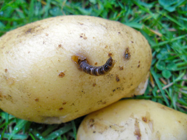 선충류에 의한 피해는 콜로라도 감자좀에 의한 피해와 비슷합니다. 선충류는 딱정벌레의 유충으로, 잡식성이며 모든 정원 작물과 곡물에 피해를 줍니다. 성충은 위협이 되지 않습니다.