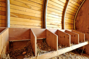 이 디자인은 기본적으로 알을 낳는 암탉을 위한 일반적인 횃대와 같지만, 적어도 15도 각도로 만든 바닥에 놓아서 알이 새가 직접 접근할 수 없는 저장 장소로 만들어진 길을 따라 굴러가도록 한 것입니다.