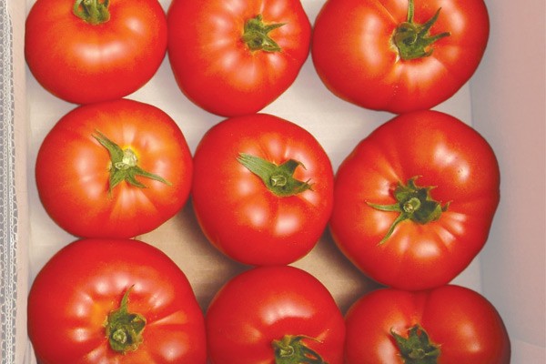 분홍빛을 띤 밝은 빨간색 토마토 4~6개가 송이를 이루며 맺힙니다. 개당 무게는 약 120~150g입니다. 속은 과육이 많고 씨가 거의 없습니다. 토마토는 카로틴이 풍부합니다. 껍질이 두꺼워 갈라지지 않고 유통기한이 길며 운송에도 적합합니다.