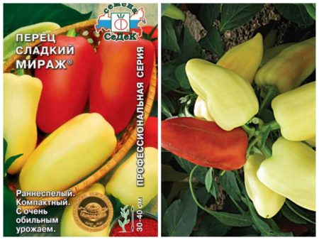 미라지는 다육하고 길쭉한 원뿔 모양의 열매를 맺는 조기 숙성 고추입니다. 열매의 색깔은 익으면서 희끄무레한 노란색에서 진한 주황색으로 변합니다. 고추 한 개당 무게는 최대 160g이며, 껍질 두께는 최대 1cm입니다. 이 품종은 제곱미터당 5.3kg의 수확량을 자랑합니다. 과실은 적당히 퍼지며, 첫 수확은 파종 후 95일이 걸립니다.