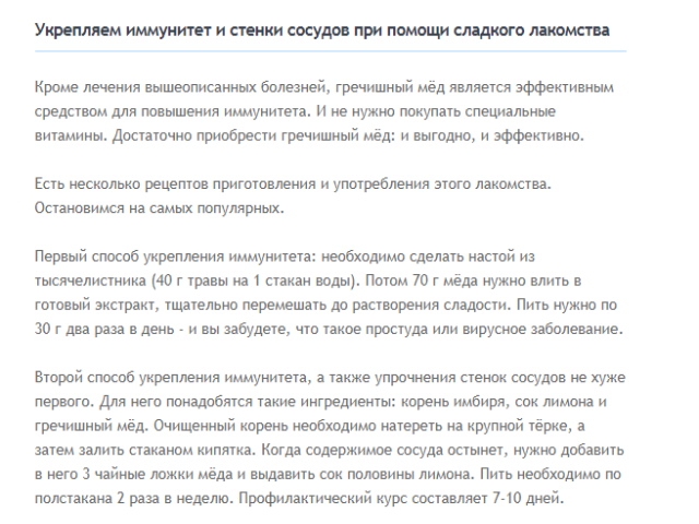 인간의 면역 체계는 스트레스, 환경 요인, 감기에 취약합니다. 따라서 면역 체계가 제대로 작동하지 않는 경우가 많습니다. 메밀꿀은 면역 체계 회복에 유익한 효과가 있습니다. 충분한 철분 함량 덕분에 면역 체계가 비타민 결핍과 빈혈에 저항하는 능력을 회복시켜 줍니다.
