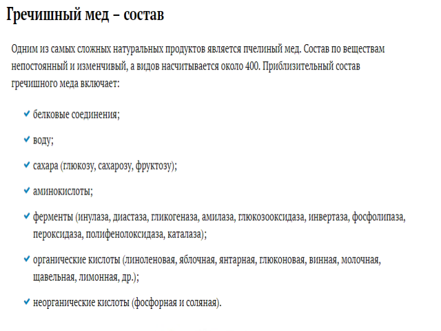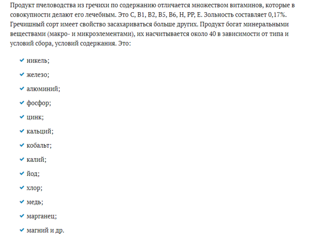 메밀꽃꿀의 효능은 오랫동안 알려져 왔습니다. 약초학자와 치료사들이 사용했으며, 고대 레시피가 남아 있어 미용 분야에서 얼굴 피부 개선에 여전히 사용되고 있습니다. 물론, 이 제품의 치유력은 주로 성분에서 비롯됩니다.