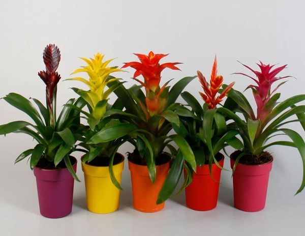 꽃을 좋아하는 사람들 사이에서는 여러 가지 색깔의 구즈마니아를 (같은 화분에) 함께 키우는 것이 매우 인기가 많습니다. 그 결과 밝고 화려한 조합이 탄생합니다.