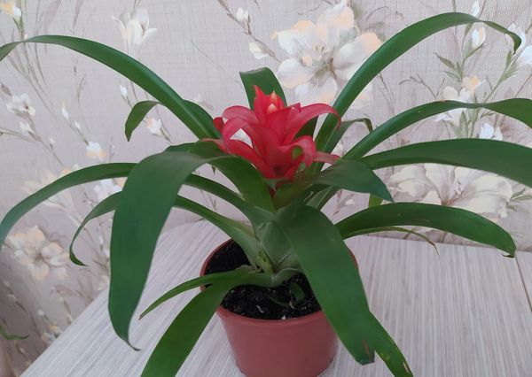 구즈마니아는 좋은 환경에서만 꽃을 피웁니다. 꽃이 핀다는 것은 토양, 조명, 물주기 등 생장 조건이 만족스럽다는 것을 의미합니다.