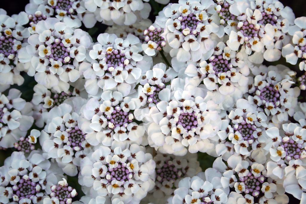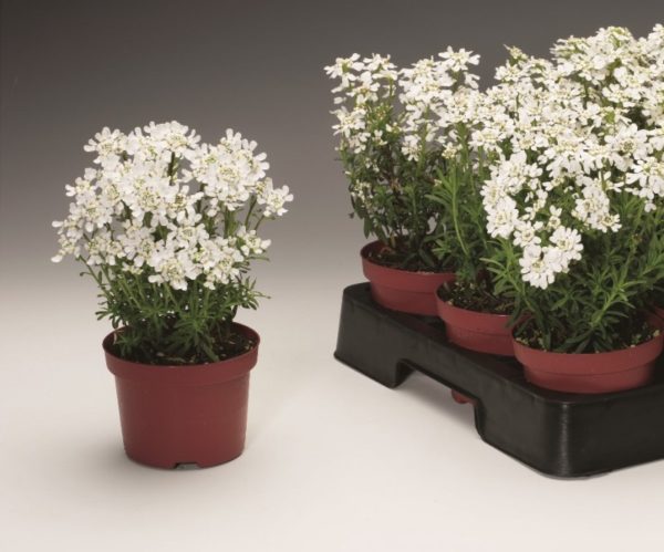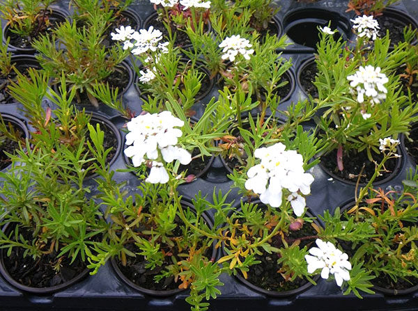 - 이베리스 페어리 믹스, 수풀 높이 0.25m, 꽃 색깔이 다양합니다.