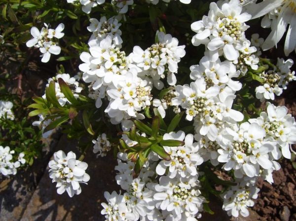 - 이베리스 바이스 리젠, 키가 최대 0.3m에 달하는 수풀, 흰색 꽃;