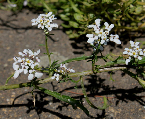 이베리스는 직근으로 자라기 때문에 이식이 어렵습니다. 종에 따라 어린순은 곧추서거나 포복합니다. 잎은 단순하고 작으며 짙은 녹색입니다. 이 아관목은 지름 1cm를 넘지 않는 수많은 작은 꽃으로 이루어진 산형화서로 장식되어 있습니다.