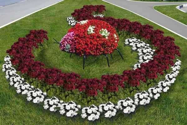 꽃식물을 활용하여 아름다운 잔디 글자를 만들 수 있습니다. 먼저 잔디를 제거한 후 파내고 이탄, 낙엽 퇴비, 유기 비료를 넣습니다. 각 글자마다 같은 꽃을 심습니다.