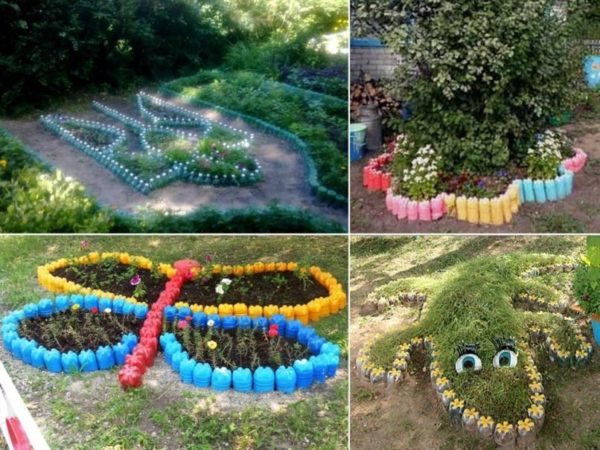 정원사들이 끊임없이 모으는 재료 중 하나는 플라스틱 용기, 특히 병입니다. 땅속에서 잘 분해되지 않기 때문에 정원 경계를 만드는 데 사용할 수 있습니다.