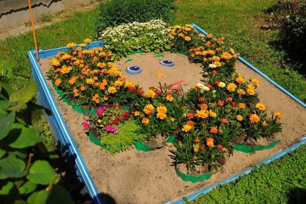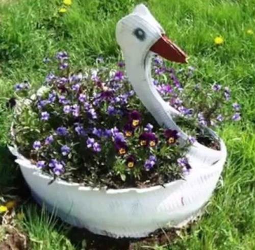 오래된 아기 욕조를 활용하여 재미있는 구조물을 만들 수 있습니다. 배처럼 칠하고 바닥에 구멍을 몇 개 뚫어주세요. 가운데에 긴 막대를 꽂고 깃발을 달아 돛을 만들어 주세요. 욕조 가장자리까지 흙, 토탄, 부식질을 섞어 채운 후 예쁜 꽃을 심어주세요.