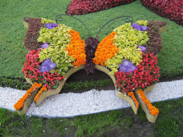 DIY 나비 모양 화단은 다양한 재료로 만들 수 있으며, 사진처럼 높이를 조절할 수도 있습니다. 모든 정원사는 창의력을 발휘하여 흥미로운 아이디어를 생각해 냅니다. 다른 사람들이 하는 것을 따라 하지 말고, 자신만의 아이디어를 만들어 보세요.