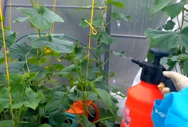 오이 뿌리에는 인터매그 수용액을 분무하거나 관수합니다. 저녁이나 이른 아침에 준비된 용액을 식물에 처리하여 윗부분을 골고루 적십니다. 최상의 결과를 얻으려면 잎에 물을 주고 뿌리에 물을 주는 것을 번갈아 하는 것이 좋습니다. 작업 용액은 분무기나 백팩 분무기를 사용하여 편리하게 사용할 수 있습니다.