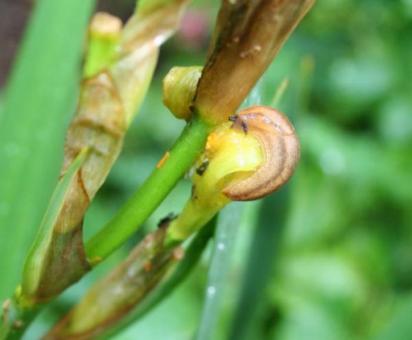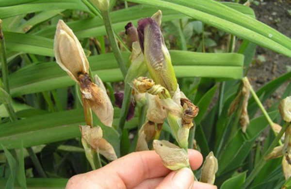 - 아이리스 파리 - 먹이는 아직 꽃이 피지 않은 새싹으로, 이로 인해 파리가 죽게 됩니다. 예방을 위해 "Actellic" 또는 "Aktara"를 사용합니다.