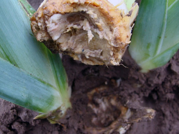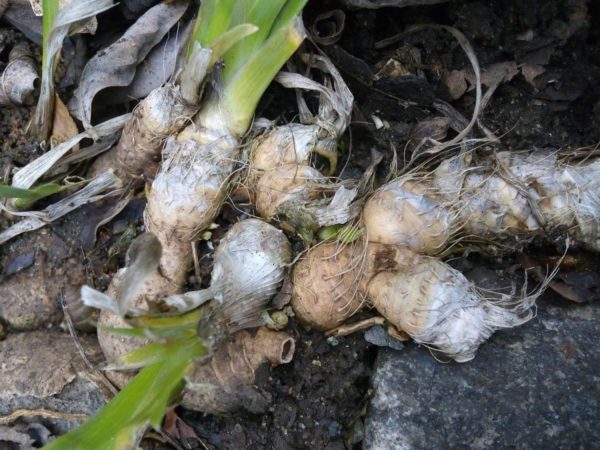 숙련된 정원사들은 아이리스 구근, 특히 네덜란드 품종의 구근을 캐내는 것을 강력히 권장합니다. 그렇지 않으면 잦은 비로 인해 썩을 수 있기 때문입니다. 다른 조기 개화 구근은 잎이 완전히 말라버린 후에 캐내지만, 아이리스 구근은 그렇게 오래 기다릴 필요가 없습니다.