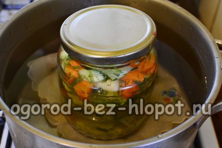 바닥에 깔개를 깔고 냄비에 담아 20분간 살균한 후 뚜껑을 닫으세요.