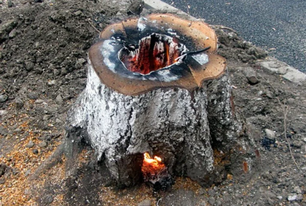 정원 가꾸기 공동체처럼 물을 일정하게, 그리고 낮은 수압으로 공급하는 경우에는 불을 사용하는 것이 더 좋습니다. 그루터기에 큰 구멍을 뚫어야 합니다. 구멍에 라이터 기름을 붓되 과열되지 않도록 주의하세요. 그런 다음 불을 피우세요. 나무가 아직 축축하고 공기 공급이 제한적이므로 처음 몇 분 동안은 불꽃을 유지하는 것이 중요합니다. 하지만 그 후 불은 더 강해질 것입니다. 약 하루가 지나면 비료로 사용할 수 있는 유용한 재만 남게 됩니다.