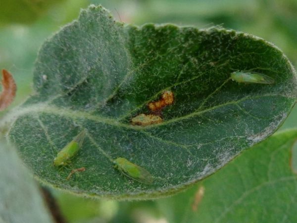 배나무에 대한 이 기생충의 주요 위험은 유충의 발달뿐만 아니라, 성충이 수액을 빨아먹는다는 것입니다. 음절 유충은 주로 잎과 어린 새싹을 기생합니다. 그러나 가장 큰 피해는 주로 새싹 주변에 알을 낳는 것입니다. 봄철 온난화 이후 첫 번째 유충은 나무의 대량 개화 시기에 맞춰 완전한 곤충으로 성장합니다. 새싹의 껍질 표층 손상, 기생충 노폐물 존재, 그리고 잎의 수액 흐름 감소로 인해 다음과 같은 변화가 관찰됩니다.
