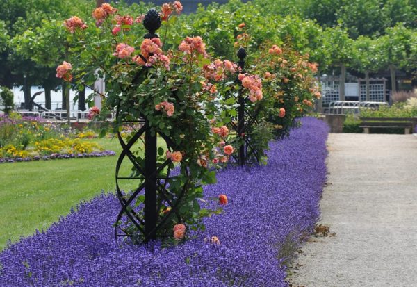 여러 품종을 심을 경우, 매력적인 정원을 만들기 위해 최적의 배치를 미리 계획하는 것이 가장 좋습니다. 한 그룹에 세 가지 품종 이상을 심는 것은 권장하지 않습니다.