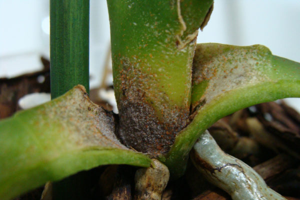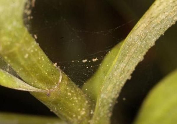 어떤 경우에는 잎뿐만 아니라 꽃봉오리 표면에도 거미줄이 발견될 수 있습니다. 이는 대규모 응애 감염의 징후이며, 난초에 응애 방제를 하지 않으면 죽게 됩니다. 다음과 같은 현상이 나타납니다.