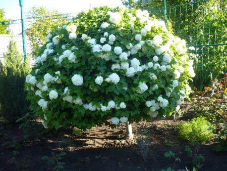 대부분의 여름 거주자의 정원에는 2가지 종류가 있습니다. "불데네즈" "Ordinary Red" 품종은 위에서 설명한 대로 가지치기를 합니다. "Buldenezh" 품종에는 다음과 같은 차이점이 있습니다.