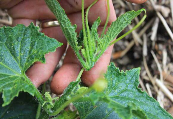 개방형 화단에서 재배되는 수분 오이 품종의 경우, 온실에서 사용하는 것과 유사한 거꾸로 된 크리스마스 트리 패턴을 사용하여 식물의 양을 점차 늘려줍니다. 수분된 품종은 단일 줄기에서만 재배할 수 없습니다. 대부분의 품종은 주줄기에는 수꽃만 피고, 옆줄기에는 암꽃이 핍니다. 옆줄기를 제거하면 수확이 불가능할 수 있습니다. 씨앗을 구입할 때는 라벨에 수분된 품종과 그렇지 않은 품종이 표시되어 있어야 합니다.