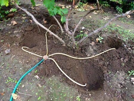 겨울이 오기 전에 최대 25cm 깊이의 얕은 뿌리를 제거해야 합니다. 이 권장 사항을 무시해서는 안 됩니다. 이 뿌리는 표면에 너무 가까이 위치하기 때문입니다. 겨울에는 물과 비료를 자주 주지 않으면 뿌리가 말라 죽고 포도나무의 에너지가 고갈됩니다. 표면 뿌리를 제거하는 절차는 다음과 같습니다.