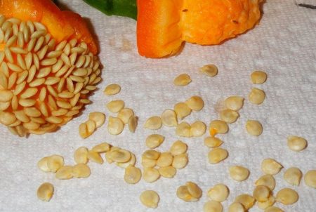 씨앗은 품종을 섞지 않고 과일에서 조심스럽게 종이 접시나 종이 위에 붓고, 12~15일 더 건조시켜 완전히 말립니다. 그 후 보관할 준비가 됩니다.
