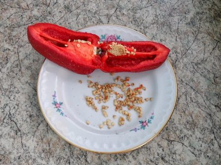 고추가 식물에서 익어가는 과정과 씨앗 수확에 대한 의견은 분분합니다. 고추는 날씨가 허락하는 한 덩굴에서 익을 때까지 두어야 씨앗이 좋은 면역력을 발달시키고 오랫동안 품질을 유지할 수 있다고 여겨집니다. 한편, 실내에서 자란 고추 씨앗도 좋지만 발아율이 더 빨리 떨어집니다. 정원사들은 일반적으로 씨앗을 오랫동안 보관하지 않고, 봄 파종에는 전년도 여름에 수확한 씨앗을 사용합니다.