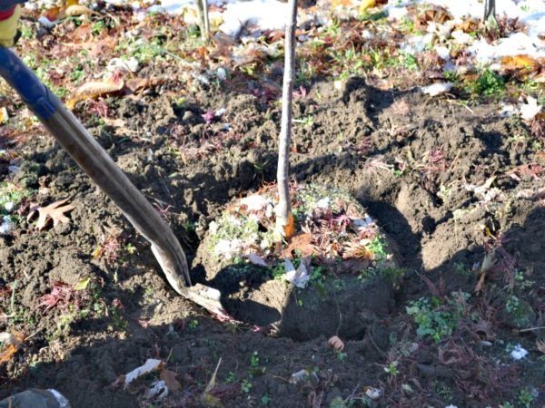 - 심기 구멍을 열고 흙을 파낸 후 뿌리 시스템의 직경에 맞는 구멍을 만듭니다.