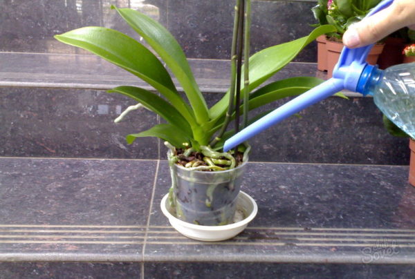 팔레놉시스가 꽃을 피우고 있다면 물뿌리개로 물을 주는 것이 가장 좋습니다. 식물 자체를 담을 수 있을 만큼 큰 용기가 필요합니다.