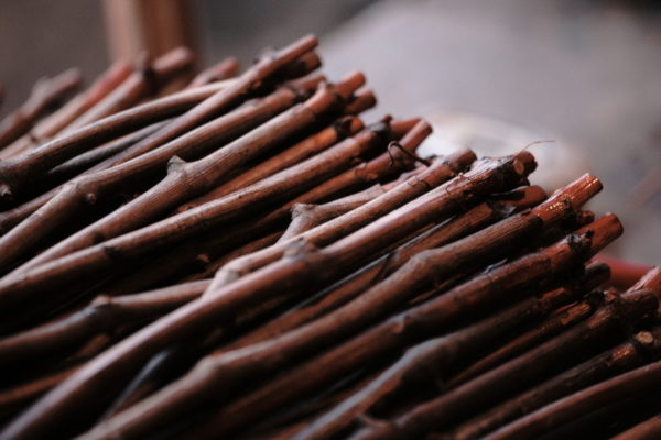 접목 재료는 습도가 높고 빛이 들지 않는 0°C에 가까운 곳에 보관하세요. 가지가 겨울 동안 마르거나 다시 자라지 않도록 주의하는 것이 중요합니다.
