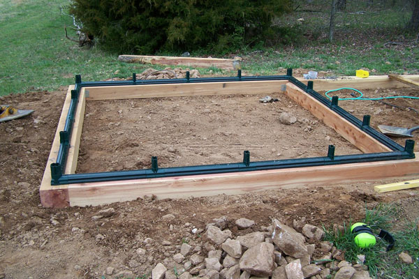 - 한쪽 끝은 기초에서 15~20mm 떨어진 곳에 놓고, 다른 쪽 끝은 배수로로 낮춥니다.
