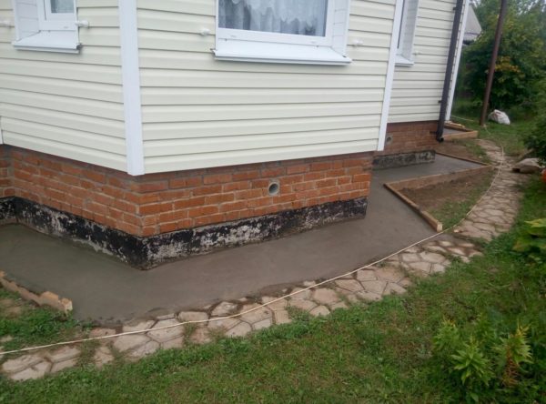 연질 콘크리트 에이프런 시공 시 습한 기초는 방수가 제대로 되지 않아 발생합니다. 이러한 배수 시스템의 마감재로는 쇄석, 잔디, 또는 메틀라흐 타일이 사용됩니다. 이러한 마감재는 순전히 장식용일 뿐이며, 기초로 물이 침투하는 것을 막지는 못합니다. 습기로 포화된 습한 콘크리트 기초는 영하의 온도에서 손상됩니다. 이는 콘크리트 덩어리에 생긴 균열과 조각으로 알 수 있습니다.