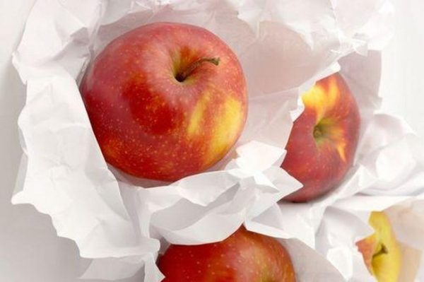이러한 포장 방식은 사과의 본래 맛, 과즙, 당도를 그대로 유지해 줍니다. 사과는 개별 포장 또는 여러 개로 나누어 포장할 수 있습니다. 한 봉지에 최대 4kg까지 담는 것이 좋습니다. 통풍을 위해 각 봉지에 구멍을 여러 개 뚫어주세요. 이렇게 하면 사과가 썩는 것을 방지할 수 있습니다. 해충으로부터 사과를 보호하려면 식초에 적신 탈지면을 사용하세요. 봉지 위에 탈지면을 작게 잘라 놓으세요.