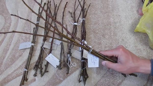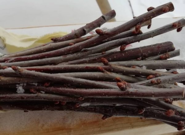 꺾꽂이한 가지를 유리섬유로 감싸 설치류로부터 보호하고, 구덩이에 심은 후 가문비나무 가지, 흙, 톱밥으로 덮습니다. 봄에 수확한 접수는 봉지에 넣거나, 눈과 함께 쌓거나, 지하실에 보관하거나, 냉장고 아랫칸에 보관할 수 있습니다. 이러한 권장 사항은 사과, 배, 체리 꺾꽂이에도 적용됩니다.