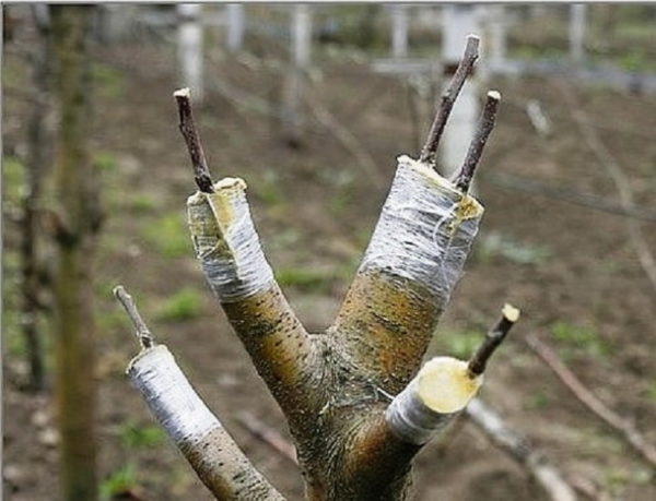 필요한 접수의 수는 손상 정도에 따라 다르며 2개에서 10개까지 다양합니다. 접수에서 눈을 제거하고 가장자리를 사선으로 자릅니다. 손상된 부위 위아래로 모목을 T자 모양으로 자른 후 나무껍질을 벗겨냅니다. 접수의 가장자리를 준비된 자른 부분에 삽입합니다. 한쪽 끝은 손상 부위 위, 다른 쪽 끝은 손상 부위 아래에 삽입합니다. 이렇게 하면 손상된 부위를 가로지르는 연결 고리가 형성됩니다. 접합 부위는 정원용 역청으로 밀봉하고 전기 테이프로 고정합니다.