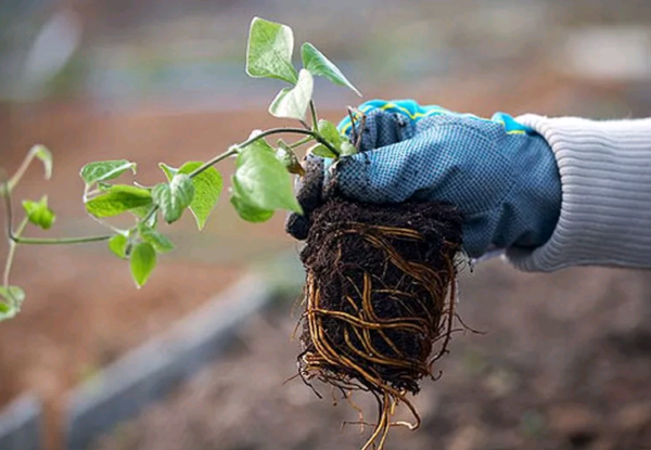 - 잘라낸 부분을 땅에 묻어 마디가 반쯤 흙으로 덮이도록 합니다.