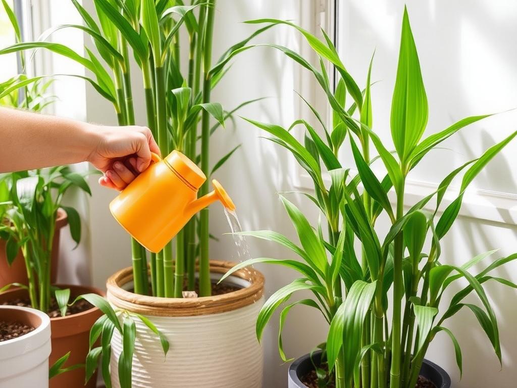 적절한 물주기 일정을 선택하는 것은 실내 대나무 관리에서 가장 중요한 측면 중 하나입니다. 대나무는 흙이나 물에서 모두 키울 수 있지만, 뿌리가 마르지 않도록 하는 것이 중요합니다. 일반적으로 일주일에 한두 번 물을 주는 것이 좋지만, 정확한 빈도는 재배 조건과 시기에 따라 달라집니다. 흙에 주의를 기울이는 것이 중요합니다. 흙 표면이 만졌을 때 건조하다면 관리가 필요하다는 신호입니다.