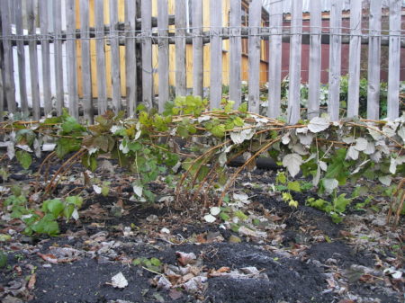 겨울 동안 라즈베리를 덮어주기에 가장 좋은 시기는 잎이 지고 첫눈이 내리기 전입니다. 이때는 가지가 아직 유연하고 뿌리줄기가 이미 잘 발달되어 있습니다.