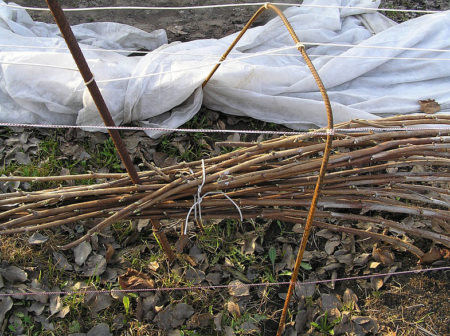 다음 내용에 관심이 있으실 수도 있습니다.눈이 충분히 내리지 않거나 제설 시스템을 설치했음에도 불구하고 눈이 바람에 날려 버리는 경우, 라즈베리는 특수 소재로 추가로 덮입니다. 루트라실이나 스펀본드와 같은 소재를 사용합니다. 이 경우, 가지를 땅으로 구부리고 그 위에 여러 겹의 부직포를 씌웁니다. 겨울이 혹독하고 눈이 적게 내리는 지역에서는 아치형 다공성 폴리카보네이트 층을 추가로 씌웁니다.