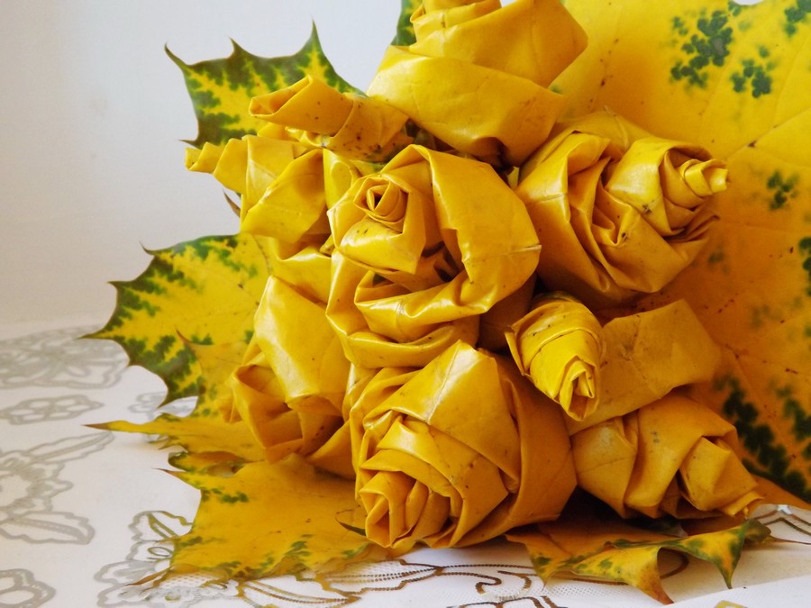 어떤 방이든 아름답게 꾸며줄 거예요. 나뭇잎은 이른 아침, 떨어진 직후에 모으는 것이 가장 좋습니다. 밤에는 바람에 잎이 떨어져 바닥에 떨어지지만, 아침에는 지나가는 사람들의 발에 밟히지 않고 그대로 남아 있어 고급스러운 가을 꽃다발을 만들 수 있습니다.