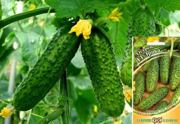 온실 재배에 권장되는 조기 숙성 교배종입니다. 열매는 최대 120g, 길이는 12cm입니다. 덩굴은 최대 3m 높이까지 자라므로 격자 재배가 필요합니다. '에리카'는 흰가루병에 강하고 노균병과 뿌리썩음병에도 강합니다. 적절한 재배를 통해 한 그루에서 약 5kg의 상품성 오이를 수확할 수 있습니다.