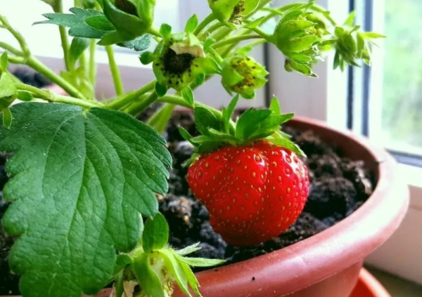정원사들은 창턱에서 딸기를 재배하려면 일년 내내 열매를 맺는 실내 품종을 선택해야 한다고 믿습니다.