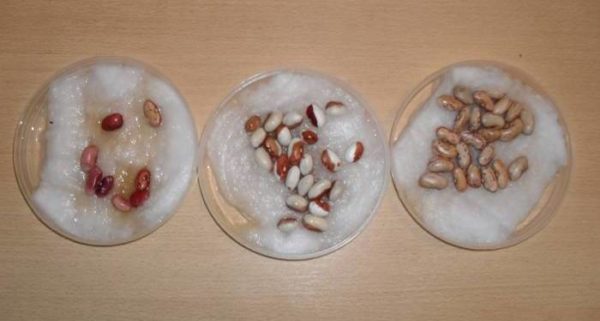 - 콩을 습한 환경에 두면 발아가 더 활발해집니다. 천, 거즈 또는 탈지면에 물을 적셔 씨앗을 그 위에 놓고 따뜻한 곳(+25°C)에 2일 동안 두세요. 주기적으로 물을 주세요. 최소 24°C 이상이어야 합니다. 지르콘, 에핀, 에너젠과 같은 성장 촉진제를 첨가할 수 있습니다.