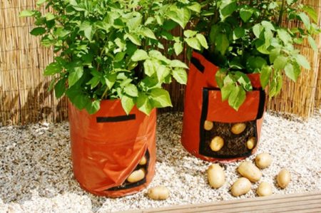 - 덤불은 편리한 장소에 놓을 수 있습니다. 감자 "농장"은 이동하기 쉽기 때문에 정원에서 공간을 절약할 수 있습니다.