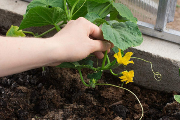 온실에 오이 모종을 심을 때는 30~40cm 간격으로 구덩이를 파고 따뜻하고 약한 과망간산칼륨 용액으로 물을 준 후 모종을 심습니다. 뿌리를 흙 표면 가까이에 둡니다. 심은 후, 심는 곳을 가볍게 다지고 흙을 넣은 후 멀칭을 합니다.