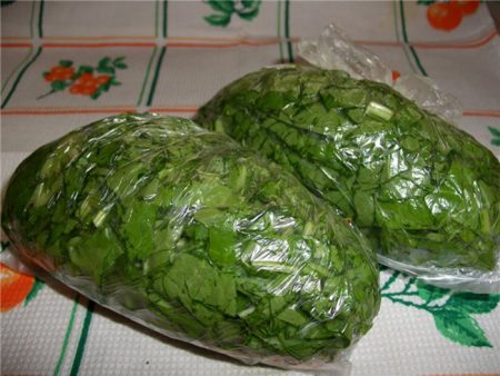 이렇게 하려면 푸른 잎을 분류하고, 씻고, 말린 다음 고기 분쇄기로 다져야 합니다.