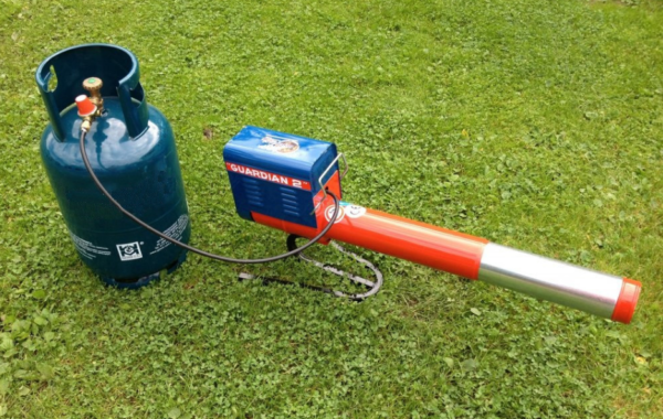 가스 대포는 이 문제에 대한 획기적인 해결책입니다. 체리 작물을 안정적으로 보호합니다. 작은 대포처럼 생긴 장치가 땅에 설치됩니다. 내부에는 프로판 가스 탱크가 들어 있습니다. 정해진 간격으로 대포가 발사되는데, 총소리나 큰 폭발음 같은 소리가 납니다.