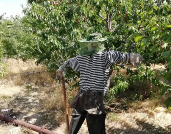 프레임은 보통 나무 조각들을 못으로 박아 팔다리가 달린 몸통을 만듭니다. 머리는 종종 낡은 양동이나 냄비를 사용합니다. 허수아비는 정원사의 상상력에 따라 낡은 옷을 입습니다. 중요한 것은 이러한 구조물이 오랫동안 지속된다는 것입니다. 열기구로 허수아비를 만들어 위쪽 가지에 매달 수도 있습니다. 이 허수아비는 날씨가 좋을 때에도 흔들리며 새들로부터 열매를 보호합니다. 가지에 매달아 놓은 자른 양파도 방해물 역할을 합니다.