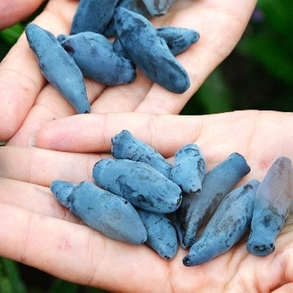 - 푸른 인동덩굴은 촘촘한 수관을 가진 관목입니다. 수관은 갈색 새싹과 무성한 잎으로 이루어져 있습니다. 잎은 길이 6cm, 너비 3cm입니다. 꽃이 필 때 수관은 노란색 종 모양의 꽃으로 장식됩니다. 자가불임성 품종이므로 타가수정이 성공하면 푸른빛을 띤 장방형 타원형 열매를 수확할 수 있습니다. 맛은 달콤하고 시큼하며 약간의 쓴맛이 납니다.